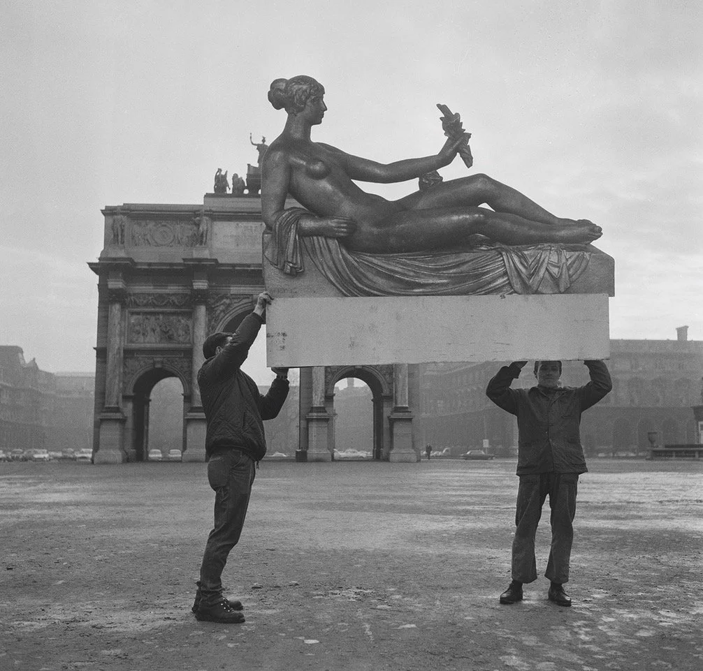 Maillol Statue being moved from Tuileries for renovations of garden, 1964