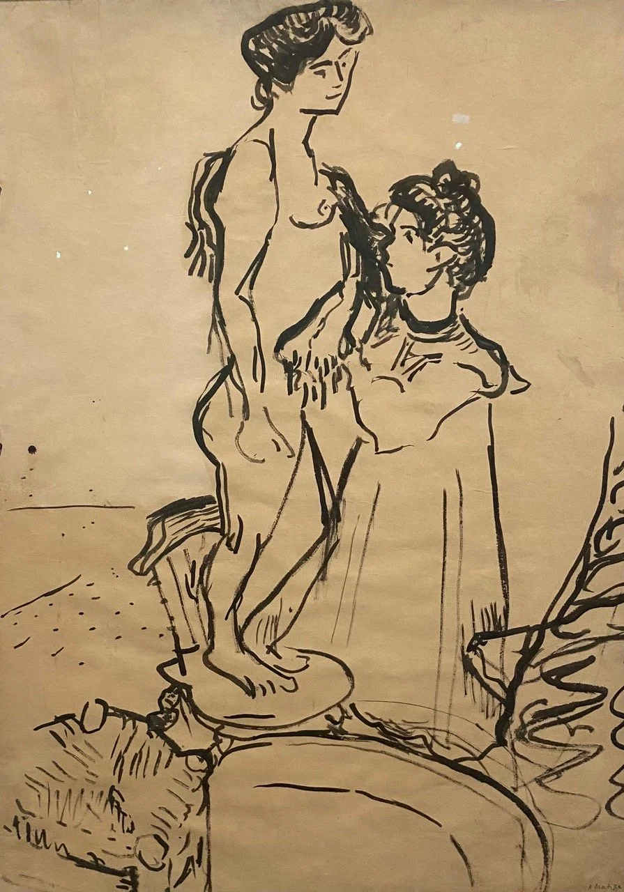 Figure 1. Marguerite (with black ribbon around her neck) helping model get out of bath, sketch, Henri Matisse, 1905
