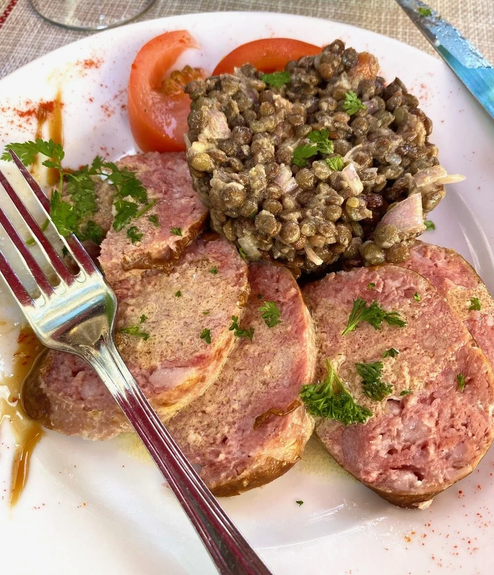 Figure 8. Slices of sausage and lentil salad was definitely delicious. Bistro du Boucher, Versailles